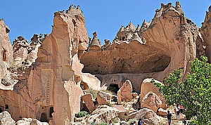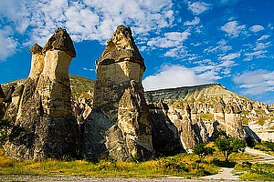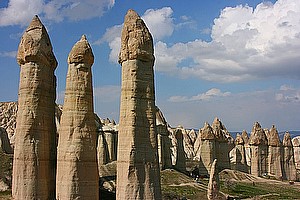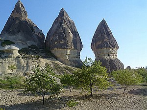 Long before the Simeon monks arrived in the Paşabaǧ, volcanic eruptions created this surreal moonscape. Lava flows eventually formed tuff rock, which wind and rain subsequently sculpted into sinuous valleys with curvy cliff faces and pointy fairy chimneys.