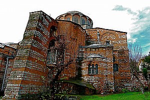 Housing a treasure trove of gorgeous Byzantine mosaics and frescoes, the Holy Savoir of Chora Church (now a museum) is not to be missed. Originally known as the Church of the Holy Savior Outside the Walls to reflect its site beyond the walls constructed by Constantine the Great (the Greek chora or khora refers to land beyond the settled metropolis), the initial fourth-century structure has been replaced by buildings dating from the eleventh, twelfth, and fourteenth centuries. Virtually all of the interior decoration—the famous mosaics and the less renowned but equally striking frescoes—dates from 1312 and was funded by Theodore Metochites, a poet and man of letters who was the official responsible for the Byzantine treasury under Emperor Andronikos II (reigned 1282–1328). One of the museum's most wonderful mosaics, found above the door to the nave in the inner narthex, depicts Theodore offering the church to Christ.
