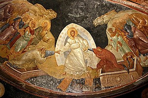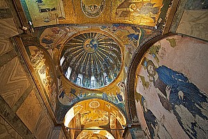 Today the Chora consists of five main architectural units: the nave, the two-storied structure (annex) added to the north, the inner and the outer narthexes, and the chapel for tombs to the south. Most of the interior is covered with mosaics depicting the lives of Christ and the Virgin Mary. Be sure not to miss the Khalke Jesus , depicting Christ and Mary with two donors: Prince Isaac Comnenos and Melane, daughter of Mikhael Palaiologos VIII. On the dome itself is a stunning depiction of Jesus and his ancestors. On the narthex's left dome is a beautiful mosaic of Mary and the Baby Jesus Surrounded by Ancestors. In the nave are three lovely mosaics: Christ; Mary and the Baby Jesus; and the Assumption of the Blessed Virgin. To the right of the nave is a side chapel built to hold the tombs of the church's founder and his relatives, close friends, and associates. This is richly decorated with frescoes dealing with themes of death and resurrection and depicting scenes taken from the Old Testament. The striking painting in the apse known as the Anastasis shows a powerful Christ raising Adam and Eve out of their sarcophagi, with saints and kings in attendance. The gates of hell are shown under Christ's feet. Less majestic but no less beautiful are the frescoes adorning the dome, which depict Mary and twelve attendant angels.